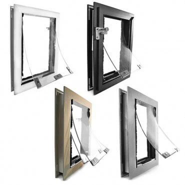 - Security & Safety - Each pet door comes with an impact and fire resistant polymer security cover to intruders out and your home safe and secure. The cover is secured directly to the frame preventing the lock from being opened from the outside (unlike other pet doors).
