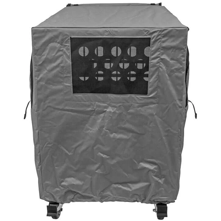 The Zinger kennel jacket is designed to fit perfectly over your Zinger crate. Made from “Sportlight™” PVC coated nylon this fabric will provide protection from rain, snow, wind and the sun. The door and side windows are zippered to offer complete ventilation when needed. Corners are reinforced to prevent premature wear at corner stress points. A 6” x 6” PVC mesh screening is installed on the backside of the crate cover to allow a minimal amount of air to flow into the crate at all times. Available in silver to match the “Silver” hammertone finish on your Zinger crate.
